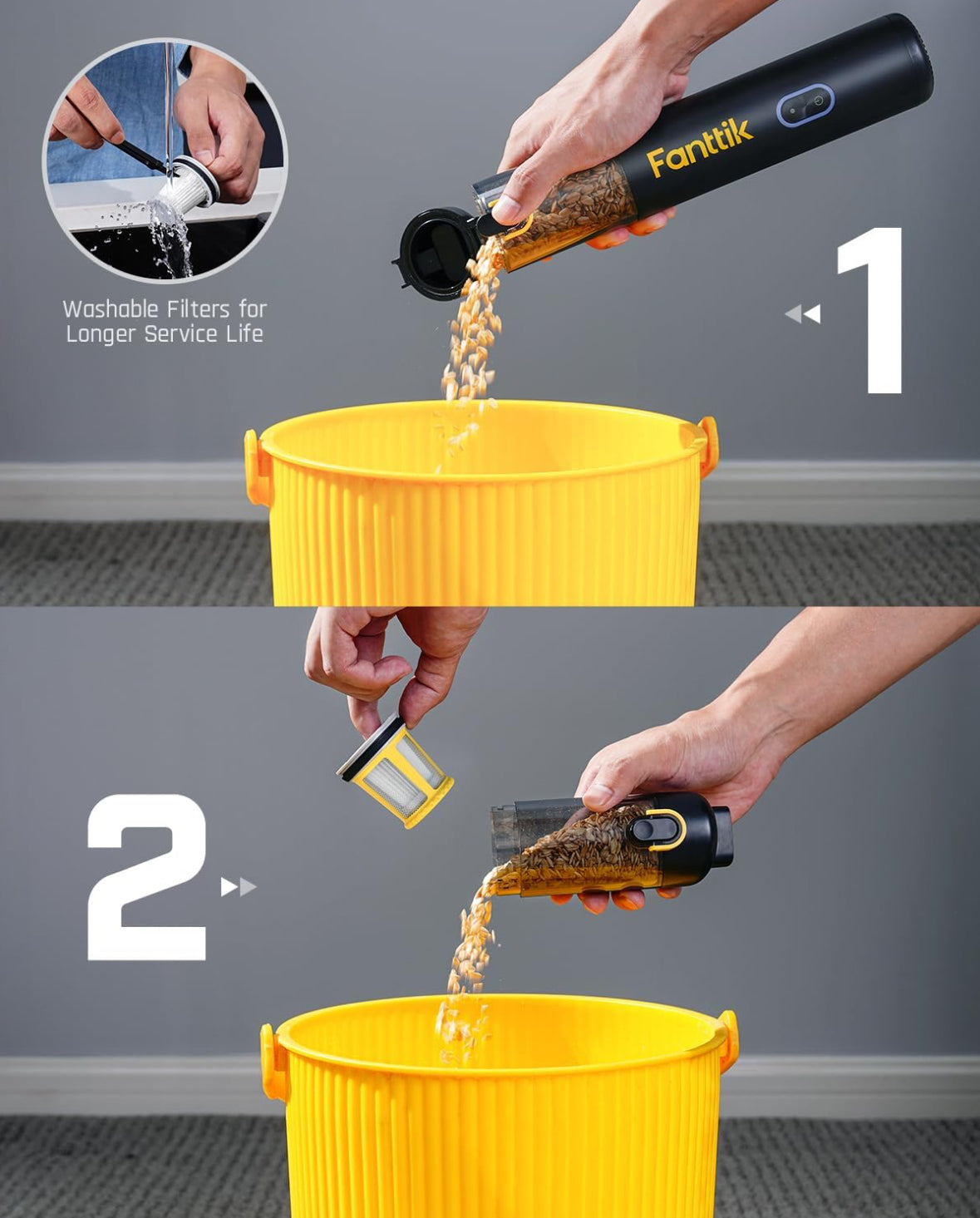 • Utilisation recommandée : Nettoyage de voiture, claviers, poils d'animaux, petits débris.