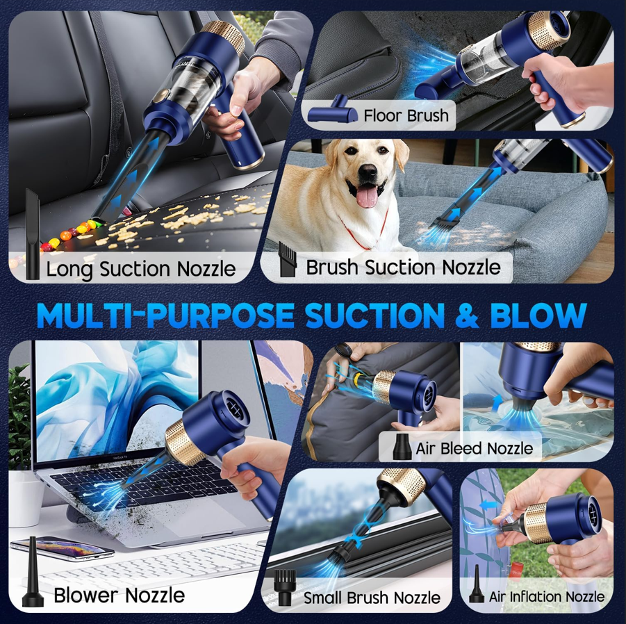 Power Meets Portability. From pet hair to pool floats, the Cordless Vacuum& Blower packs industrial-grade suction and inflation power into a compact, easy-to-carry design. Whether you're cleaning your car, inflating a swim ring, or compressing storage bags, this handheld powerhouse is built to handle it all.