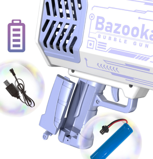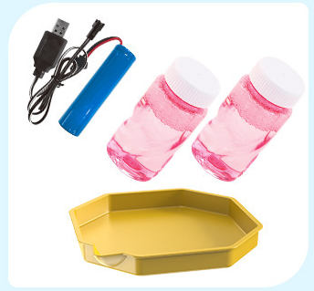 Rich AccessoriesOur bubble machine gun is equipped with a wealth of accessories for you, including a high-capacity lithium battery, a USB battery charging cable, a bubble water tray and bottles of bubble water. |
